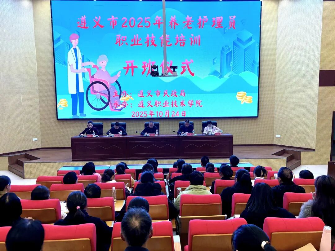 为深入贯彻积极应对人口老龄化国家战略,夯实全市养老服务高质量发展人才根基,提升养老护理员的专业素养和服务水平。10月24日上午,由市民政局主办、遵义职业技术学院承办的“遵义市2025年养老护理员职业技能培训”在新蒲新区开班。